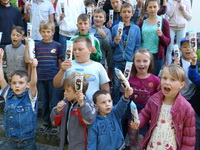 Діти отримали листівки з молитвою за прославу о. Єремії. Після катехитичного заняття діти бавилися різні цікаві ігри, банси та смакували солодощі. Відходячи додому, кожна дитина отримала у подарунок набір канцелярського приладдя до школи.