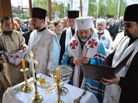 Чин освячення звершив Високопреосвященний Владика Ігор Возьняк, Львівський Архиєпископ і Митрополит. Після Молебну до Всіх Святих України Владика Ігор у своїй промові заохотив присутніх старатися плекати чистоту серця, бо Господь особливо вислуховує молитви тих, котрі є чисті серцем. Також Владика звернув увагу на труднощі, пов’язані із погодними умовами, бо в цей день був і дощ, і сніг, вказавши на те, що «це діло є Боже, бо коли щось робиться на Славу Божу, тоді є різні перешкоди».