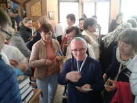 Опісля усі паломники могли прикластися до мощей Блаженної Мати Йосафати у своїй молитві. Прощаючись з паломниками, ми зробили спільну світлину на подвір’ї церкви.