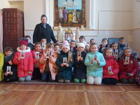 Також учні 3А з батьками слухали розповідь про життя і служіння Йосафати у каплиці Успіння Пресвятої Богородиці, яка належала монастирю Сестер Служебниць до приходу радянської влади (з 1907 до 1947 р.). Тут особисто молилася Блаженна Йосафата, коли перебувала в Бережанах. У нашому місті виконувала своє служіння її рідна сестра – с. Арсенія Гордашевська, яка є похована на міському цвинтарі разом з іншими Сестрами Служебницями.