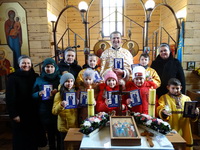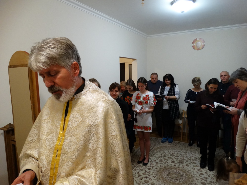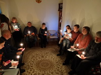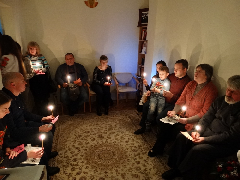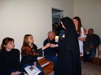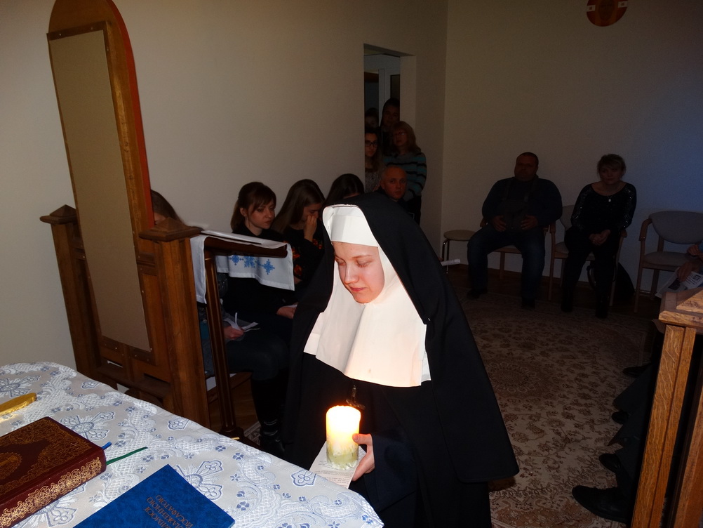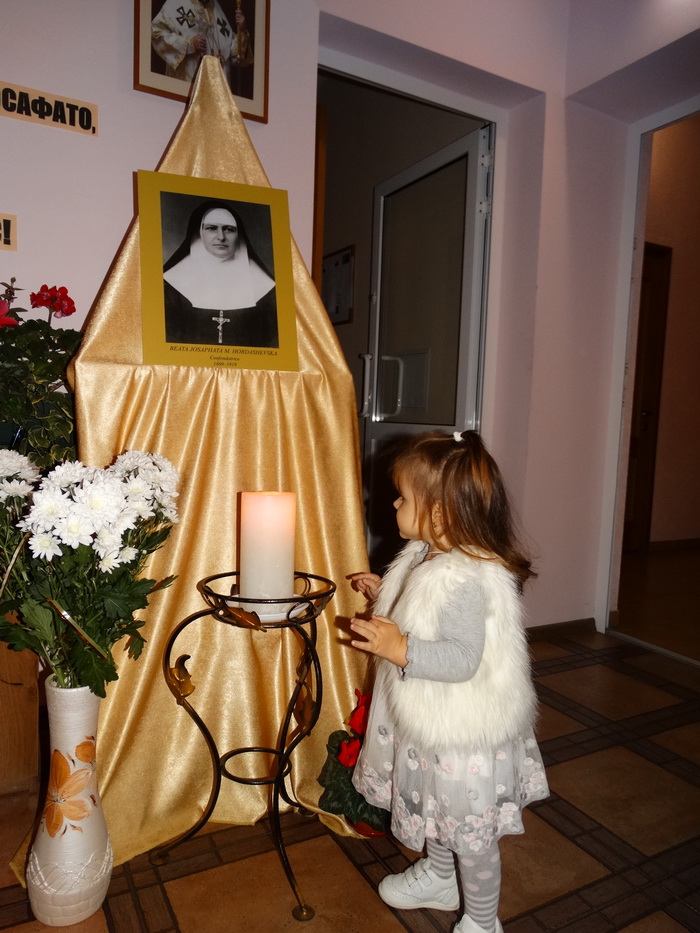 Ввечері, 20 листопада, святкування продовжилося в Соціальному Центрі Молебнем і творчим заходом, який приготувала с. Єроніма Вовчак разом з дівчатами, мешканцями дому. На захід були запрошені родини переселенців з Донбасу і парафіяни каплиці «Всіх святих України» (в майбутньому – храму Преподобної Йосафати).