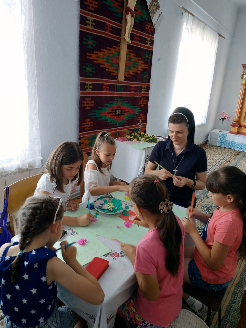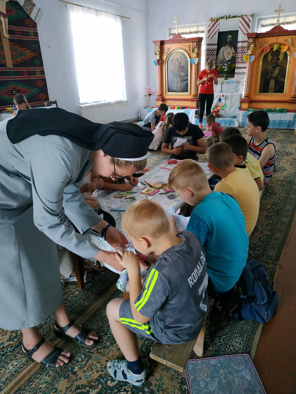 Діти з радістю приходять на катехитичні заняття, ручні роботи, спортивні ігри та розваги, а ввечері, о 20:00, усі збираються на Святу Літургію до церкви, де сестри вчать співати молодь з Марійської Дружини.