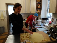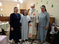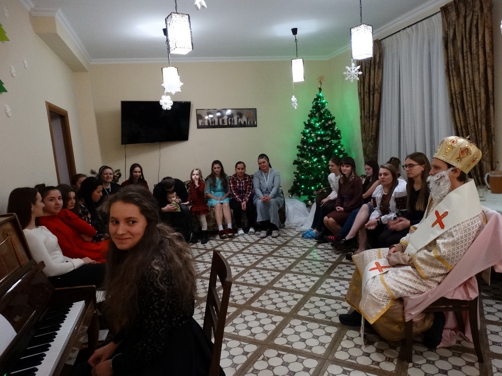 А помічники святого Миколая з «Дому надії» – сестри і дівчата, спочатку завітали до наших Захисників на передову, приготувавши для них домашнє печиво і інші смаколики і речі. Потім запросили до себе родини переселенців і приготували для них святкове дійство; відвідали дітей і дорослих з парафії Преподобної Йосафати Гордашевської і, нарешті, дочекалися святителя у себе!