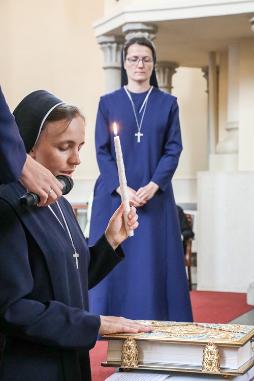 Провінційна Настоятелька Сестер Служебниць Непорочної Діви Марії с. Мирослава Яхимець у своєму привітальному слові сказала, що прийнявши Боже запрошення до чернечої спільноти, ми вибрали дорогу любові. Божа любов покликала нас до життя, дає нам натхнення та силу до життя та служіння і щоб цієї сили не забракло, с. Мирослава закликала усіх сестер любити Слово Боже і плекати міцний зв’язок з Господом, щоб бути «плідною галузкою» у винограднику Божому. Крім того, сестра висловила вдячність рідним с. Віталії Савшак і с. Марти Воловець, а також запевнила їх про молитву та підтримку.